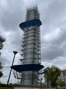 工事が完了すると、足場を解体します。