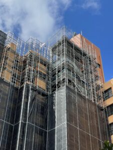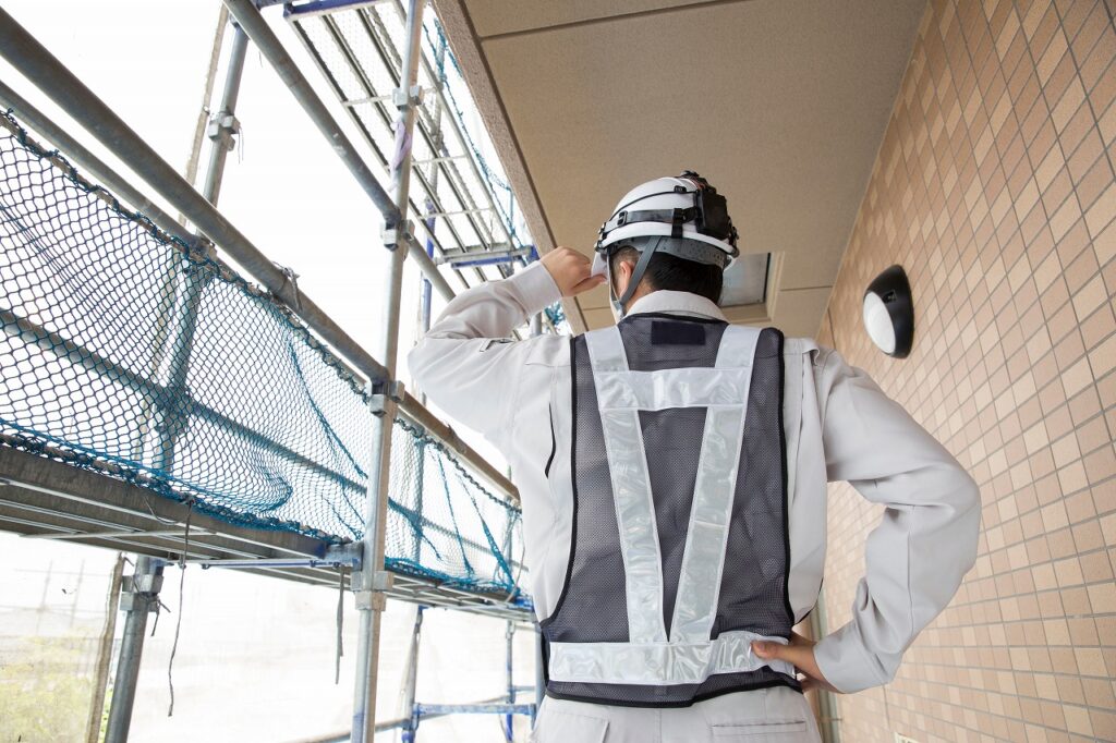 足場工は、最初に現場に入って工事に着手するのが特徴です。