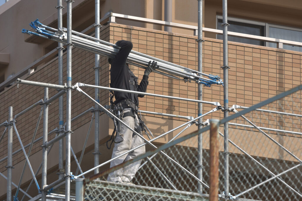 建設現場に欠かせない足場ですが、これらは建物の工事を担う職人が行うものではなく、専門業者が足場を組み立てます。